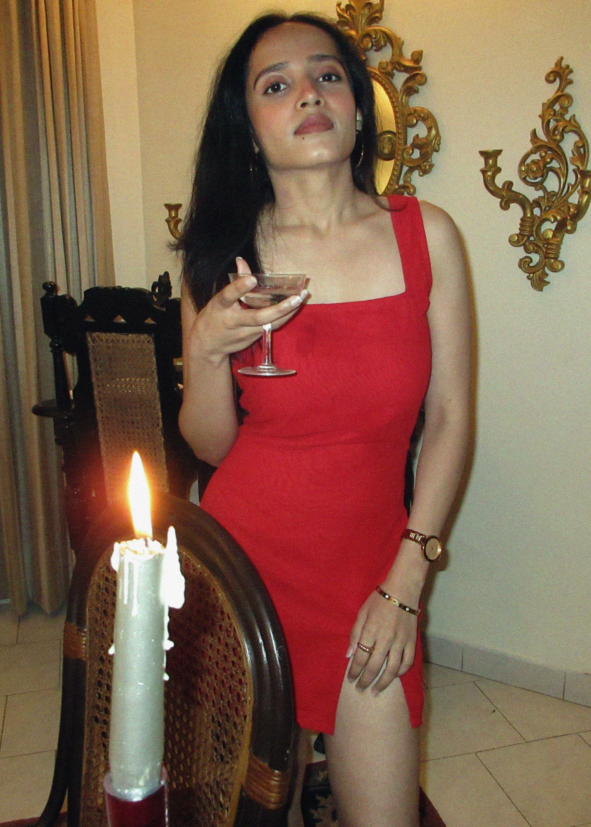 This red mini dress is designed to command attention with effortless grace. Featuring a clean neckline and a subtly daring thigh slit, the silhouette contours the body while maintaining refined elegance. The rich red hue evokes passion and confidence—perfect for Valentine evenings and unforgettable nights out.